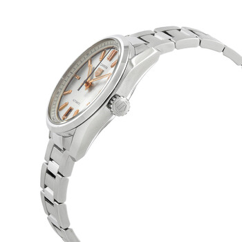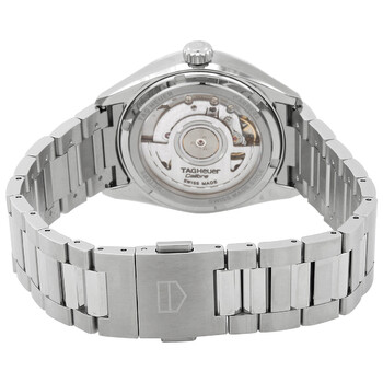 Silver-tone stainless steel case and bracelet. Fixed silver-tone stainless steel bezel. Silver-tone dial with gold-tone hands and index hour markers. Minute markers around the outer rim. Dial Type: Analog. Luminescent hands and markers. Date display at the 6 o'clock position. Tag Heuer Calibre 7 Automatic movement, based upon ETA 2892-A2, containing 25 Jewels, bitting at 28800 vph, and has a power reserve of approximately 46 hours. Scratch resistant sapphire crystal. Transparent see through case back. Round case shape, case size: 36 mm. Deployment with push button release clasp. Water resistant at 50 meters / 165 feet. Functions: date, GMT, second time zone, hour, minute, second. Additional Info: original box, international warranty card, manual (complete accessories). Carrera Series. Luxury watch style. Watch label: Swiss Made. Tag Heuer Carrera GMT Automatic Silver Dial Unisex Watch WBN2310.BA0001.