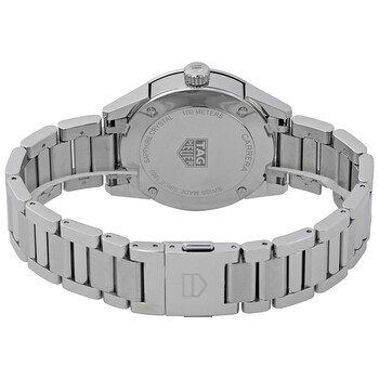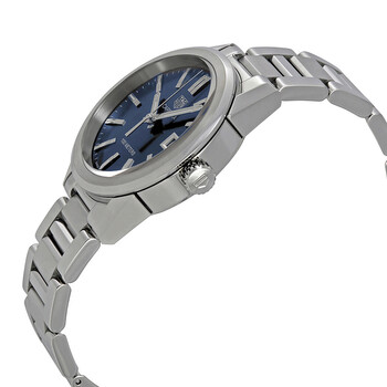 Stainless steel case with a stainless steel bracelet. Fixed stainless steel bezel. Blue dial with luminous silver-tone hands and index hour markers. Minute markers around the outer rim. Dial Type: Analog. Luminescent hands and markers. Date display at the 3 o'clock position. Quartz movement. Scratch resistant sapphire crystal. Pull / push crown. Solid case back. Round case shape. Case size: 36 mm. Deployment clasp. Water resistant at 100 meters / 330 feet. Functions: date, hour, minute, second. Dress watch style. Watch label: Swiss Made. Tag Heuer Carrera Midsize Blue Dial Stainless Steel Watch WBG1310.BA0758.