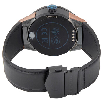 Black PVD fine brushed and polished titanium case with a black calfskin and rubber strap. Matt ceramic bezel. Digital dial. Minute markers around the outer rim. Dial Type: digital. Quartz movement. Scratch resistant sapphire crystal. Round case shape. Case size: 45 mm. Folding clasp. Water resistant at 50 meters / 165 feet. Functions: chronograph, date, hour, minute, second, timer, gps, accelerometer, gyroscope with tilt detection, microphone. Additional Info: ambient light sensor, bluetooth ble 4.1 - wlan 2.4 ghz 802.11 b/g/n connectivity, 512mb main memory with 4gb storage memory. Watch label: Swiss Made. Tag Heuer Connected Modular Chronograph Quartz Digital Men's Smart Watch SBF8A8013.32FT6079.