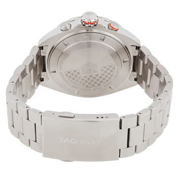 Silver-tone stainless steel case and bracelet. Fixed tachymeter scale blue stainless steel bezel. Blue dial with silver-tone hands and index hour markers. Minute markers around the outer rim. Dial Type: Analog. Luminescent hands and markers. Date display at the 3 o'clock position. Chronograph - three sub-dials displaying: 60 second, 30 minute and 12 hour. Tag Heuer Calibre 16 Automatic movement, based upon Valjoux 7750, containing 25 Jewels, bitting at 28800 vph, and has a power reserve of approximately 42 hours. Scratch resistant sapphire crystal. Solid case back. Round case shape, case size: 44 mm. Fold over clasp with a safety release. Water resistant at 200 meters / 660 feet. Functions: chronograph, date, day, hour, minute, small second. Additional Info: original box, international warranty card, manual (complete accessories). Formula 1 Series. Luxury watch style. Watch label: Swiss Made. Tag Heuer Formula 1 Chronograph Automatic Blue Dial Men's Watch CAZ201G.BA0876.