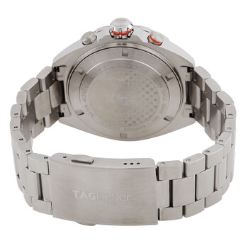 Silver-tone stainless steel case and bracelet. Fixed green ceramic bezel. Green dial with silver-tone hands and index hour markers. Minute markers around the outer rim. Dial Type: Analog. Luminescent hands and markers. Date display at the 3 o'clock position. Chronograph - three sub-dials displaying: 60 second, 30 minute and 1/10th of a second. Tag Heuer Calibre 16 Automatic movement, based upon Valjoux 7750, containing 25 Jewels, bitting at 28800 vph, and has a power reserve of approximately 42 hours. Scratch resistant sapphire crystal. Round case shape, case size: 44 mm, case thickness: 14.90 mm. Fold over clasp with a safety release. Water resistant at 200 meters / 660 feet. Functions: chronograph, date, hour, minute, second. Formula 1 Series. Sport watch style. Watch label: Swiss Made. Tag Heuer Formula 1 Chronograph Automatic Green Dial Men's Watch CAZ201H.BA0876.