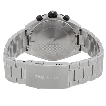 Silver-tone stainless steel case and bracelet. Black bezel. Blue dial with silver-tone hands and index-Arabic numeral hour markers. Minute markers around the outer rim. Dial Type: Analog. Luminescent hands and markers. Date display at the 4 o'clock position. Chronograph - three sub-dials displaying: 60 second, 30 minute and 1/10th of a second. Quartz movement. Scratch resistant sapphire crystal. Screw down crown. Solid case back. Round case shape, case size: 43 mm, case thickness: 12.4 mm. Band width: 21.5 mm. Fold over clasp with a safety release. Water resistant at 200 meters / 660 feet. Functions: chronograph, date, hour, minute, second. Formula 1 Series. Sport watch style. Watch label: Swiss Made. Tag Heuer Formula 1 Chronograph Quartz Blue Dial Men's Watch CAZ101AV.BA0842.