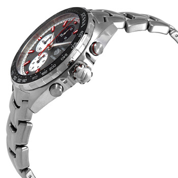 Silver-tone stainless steel case and bracelet. Black bezel. Anthracite grey dial with silver-tone hands and index hour markers. Tachymeter. Dial Type: Analog. Luminescent hands and markers. Date display at the 3 o'clock position. Chronograph - three sub-dials displaying: 60 second, 30 minute and 12 hours. Tag Heuer Calibre 16 Automatic movement, based upon Valjoux 7750, containing 25 Jewels, bitting at 28800 vph, and has a power reserve of approximately 42 hours. Scratch resistant sapphire crystal. Solid case back. Round case shape, case size: 44 mm. Deployment clasp. Water resistant at 200 meters / 660 feet. Functions: chronograph, date, hour, minute, second. Additional Info: senna special edition. Formula 1 Senna Special Edition Series. Watch label: Swiss Made. Tag Heuer Formula 1 Senna Special Edition Chronograph Automatic Men's Watch CAZ2017.BA0647.