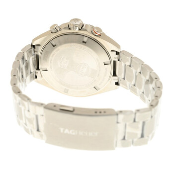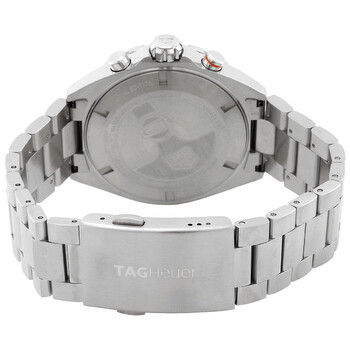 Silver-tone stainless steel case and bracelet. Fixed blue aluminum bezel. Blue dial with silver-tone hands and Arabic numeral hour markers. Minute markers around the outer rim. Dial Type: Analog. Luminescent hands and markers. Date display at the 4 o'clock position. Chronograph - three sub-dials displaying: 60 second, 30 minute and 1/10th of a second. Quartz movement. Scratch resistant sapphire crystal. Solid case back. Round case shape, case size: 43 mm. Deployment with push button release clasp. Water resistant at 200 meters / 660 feet. Functions: chronograph, date, hour, minute, second. Additional Info: original box, international warranty card, manual (complete accessories). Formula 1 X Gulf Series. Luxury watch style. Watch label: Swiss Made. Tag Heuer Formula 1 X Gulf Chronograph Quartz Blue Dial Men's Watch CAZ101AT.BA0842.
