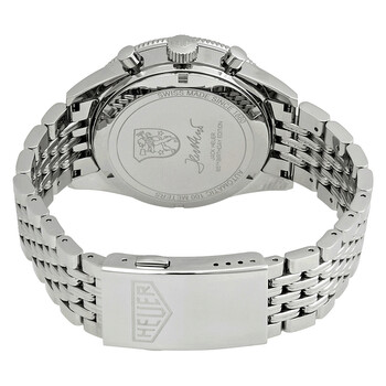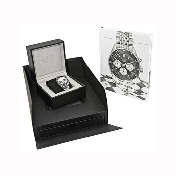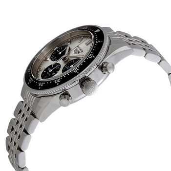 Stainless steel case with a stainless steel bracelet. Bi-directional rotating stainless steel bezel with a black aluminium ring. Silver dial with luminous silver-tone hands and index hour markers. Minute markers around the outer rim. Dial Type: Analog. Luminescent hands and markers. Date display at the 6 o'clock position. Chronograph - three sub-dials displaying: 60 second, 30 minute and 12 hour. Calibre Heuer-02 automatic movement with a 75-hour power reserve. Scratch resistant sapphire crystal. Pull / push crown. Solid case back. Round case shape. Case size: 42 mm. Band width: 22 mm. Fold over with safety release clasp. Water resistant at 100 meters / 330 feet. Functions: chronograph, date, hour, minute, second. Heritage Autavia Series. Sport watch style. Watch label: Swiss Made. Tag Heuer Heritage Autavia Chronograph Automatic Silver Dial Men's Watch CBE2111.BA0687.