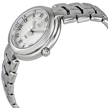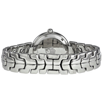 Stainless steel case with a stainless steel bracelet. Fixed stainless steel bezel. Silver guilloche dial with luminous silver-tone hands and Roman numeral hour markers. Minute markers around an inner ring. Dial Type: Analog. Luminescent hands. Date display at the 6 o'clock position. Quartz movement. Scratch resistant sapphire crystal. Screw down crown. Solid case back. Case size: 34.5 mm. Case thickness: 9.6 mm. Round case shape. Band width: 16 mm. Deployment clasp with a push button release. Water resistant at 100 meters / 330 feet. Functions: date, hour, minute, second. Dress watch style. Watch label: Swiss Made. Item Variations: WAT1314 BA0956, WAT1314-BA0956, WAT1314/BA0956, WAT1314BA0956. Tag Heuer Link Silver Guilloche Dial Ladies Watch WAT1314.BA0956.