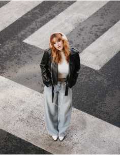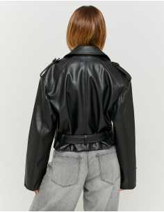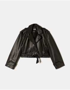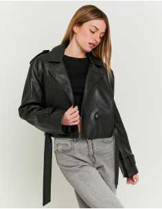 ქურთუკი Tally Weijl - Black Faux Leather Cropped Trenchcoat