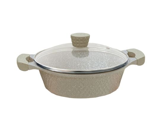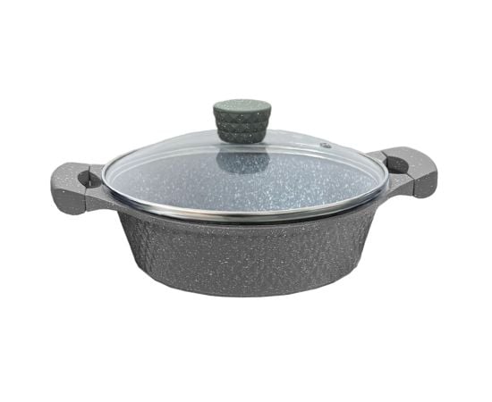 აქვს ტექსტურირებული ექსტერიერი და ორი მტკიცე სახელური ორივე მხარეს. მოყვება გამჭვირვალე შუშის თავსახური ნაცრისფერი, ტექსტურირებული სახელურით. აქვს ოდნავ გაშლილი ფორმა და ორი განიერი, ინტეგრირებული სახელური მარტივი დამუშავებისთვის. გამჭვირვალე მინის სახურავი საშუალებას გაძლევთ აკონტროლოთ კერძის პროგრესი სახურავის აწევის გარეშე. სახელური არის ტექსტურირებული უსაფრთხო დაჭერისთვის. ქვაბი შესაფერისია მომზადების სხვადასხვა მეთოდისთვის.