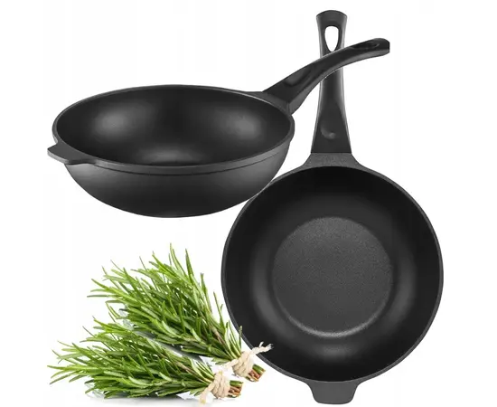 მაღალი ხარისხის შვეიცარიული ILAG Ultimate არაწებოვანი საფარი იცავს ნაკაწრებისგან და უზრუნველყოფს მარტივ მოხმარებას. 30 სმ დიამეტრი იდეალურია დიდი ულუფებისთვის – ვოკისთვის, პასტისთვის და ბოსტნეულის შესაწვავად. Full induction ტექნოლოგია ახორციელებს 3-ჯერ სწრაფად გაცხელებას და თანაბარ სითბოს განაწილებას, რაც ზოგავს დროსა და ენერგიას. მტკიცე ჩასხმული ალუმინის კორპუსი ინახავს სითბოს და გამძლეა დეფორმაციის მიმართ. ერგონომიული ბაკელიტის სახელური თერმომდგრადია და კომფორტული მოსასმენია. გამოიყენება ყველა ტიპის ქურაზე და ღუმელში (მაქს. 180°C-მდე), მარტივად ირეცხება ჭურჭლის სარეცხ მანქანაშიც.