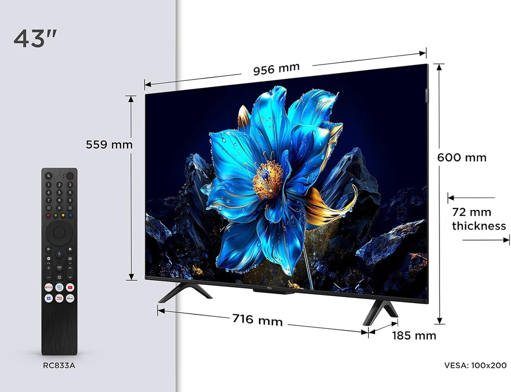 TCL 43P7K QLED 4K 43'' Google TV Black