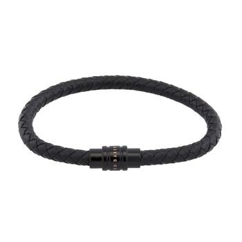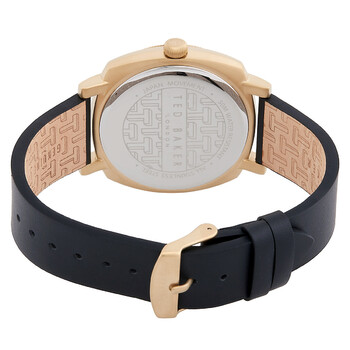 Gold-tone stainless steel case with a black leather strap. Fixed gold-tone stainless steel bezel. Black dial with gold-tone hands and index-Arabic numeral hour markers. Dial Type: Analog. Three sub-dials displaying: date, day and 24 hour. Quartz movement. Scratch resistant mineral crystal. Pull / push crown. Solid case back. Tonneau case shape, case size: 42 mm. Buckle clasp. Water resistant at 50 meters / 165 feet. Functions: date, day, hour, minute, second, 24 hour. Additional Info: comes with a braided logo bracelet. Caine Urban Series. Casual watch style. Watch label: Japan Movt. Item Variations: BKGFW2222. Ted Baker Caine Urban Quartz Black Dial Men's Watch BKGFW22229I.