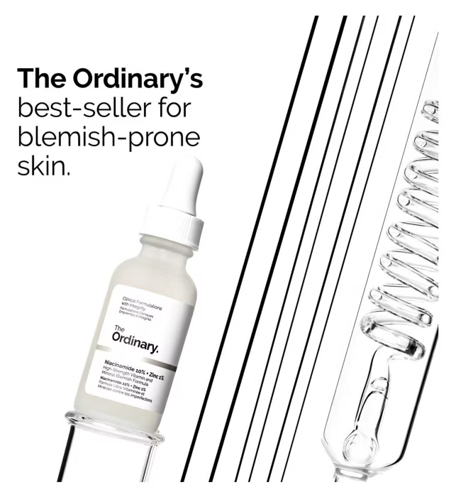 The Ordinary Niacinamide 10%+Zinc 1% სახის შრატი ნიაცინამიდის 10 % იანი ხსნარი თუთიის კონცენტრაციით აუმჯობესებს კანის ტექსტურას, აუფერულებს აკნეს ლაქებს და მნიშვნელოვნად ამცირებს ფორებს. არეგულირებს ცხიმის გამომუშავებას და ამცირებს გაღიზიანებას. ხსნის აკნეს სიმპტომებს. კანი ხდება ერთგვაროვანი და გლუვი. პროდუქტს გააჩნია pH 5-დან 6.5-მდე. არ შეიცავს სპირტს, სილიკონს და მინერალურ ზეთებს.