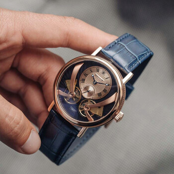 These are our most iconic timepieces; the best sellers that never fail to steal the heart of every wearer. There's a reason they've been around as long as they have, after all. Rose gold-tone stainless steel case with a blue leather strap. Fixed rose gold-tone stainless steel bezel. Blue dial with blue hands and index hour markers. Minute markers around the outer rim. Dial Type: Analog. PTS - S05A automatic movement. Scratch resistant mineral crystal. Pull / push crown. Transparent case back. Round case shape, case size: 43 mm, case thickness: 15 mm. Band width: 22 mm, band length: 8 inches. Water resistant at 50 meters / 165 feet. Functions: hour, minute, second. Beaufort Anatolia Series. Casual watch style. Thomas Earnshaw Beaufort Anatolia Blue Dial Men's Watch ES-8059-05.