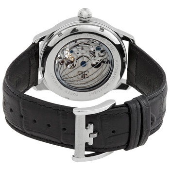 Silver-tone stainless steel case with a black leather strap. Fixed silver-tone stainless steel bezel. Black dial with blue hands and index hour markers. Minute markers around the outer rim. Dial Type: Analog. Automatic movement. Round case shape, case size: 42 mm. Functions: hour, minute, second. Longitude Shadow Automatic Series. Dress watch style. Thomas Earnshaw LONGITUDE SHADOW AUTOMATIC Black Dial Men's Watch ES-8063-04.