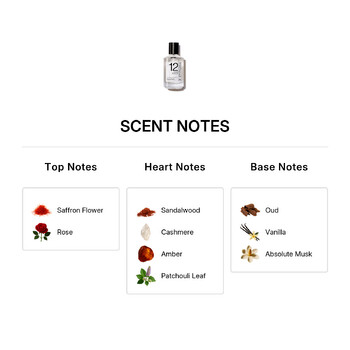 Belonging to the Amber Floral fragrance family, No.12 Oud Douze opens with a rich burst of saffron flower and delicate rose, creating a warm and inviting introduction. As the scent unfolds, heart notes of creamy sandalwood, soft cashmere, golden amber, and earthy patchouli leaf add a velvety smoothness that lingers gracefully on the skin.