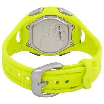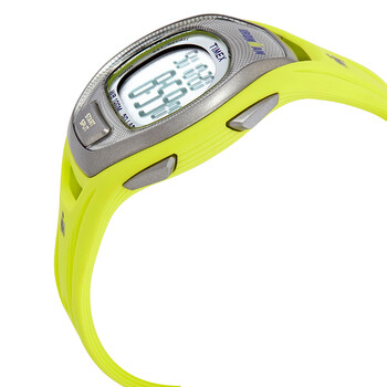 Lime resin case with a lime resin strap. Fixed stainless steel bezel. Digital dial displaying: hours, minutes, seconds, date and day of the week. Dial Type: Digital. Luminescent indiglo night light. Quartz movement. Acrylic crystal. Solid case back. Oval case shape. Case size: 42 mm. Case thickness: 11 mm. Band width: 19 mm. Tang clasp. Water resistant at 100 meters / 330 feet. Functions: date, day, hour, minute, second, stopwatch, timer, alarm. Additional Info: sports stopwatch with 50 lap memory & interval training timer. Ironman Series. Sport watch style. Timex Ironman Sleek 50-Lap Men's Digital Watch TW5K96100.