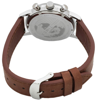 Silver-tone stainless steel case with a brown leather strap. Fixed silver-tone stainless steel bezel. Blue dial with silver-tone hands and index-Arabic numeral hour markers. Minute markers around the outer rim. Dial Type: Analog. Date display between 4 and 5 o'clock position. Chronograph - three sub-dials displaying: 60 second, 60 minute and 24 hour. Quartz movement. Scratch resistant acrylic crystal. Pull / push crown. Solid case back. Round case shape, case size: 40 mm, case thickness: 13 mm. Band width: 20 mm. Buckle clasp. Water resistant at 50 meters / 165 feet. Functions: chronograph, date, hour, minute, second. Marlin Series. Sport watch style. Timex Marlin Chronograph Quartz Blue Dial Men's Watch TW2W10200VQ.
