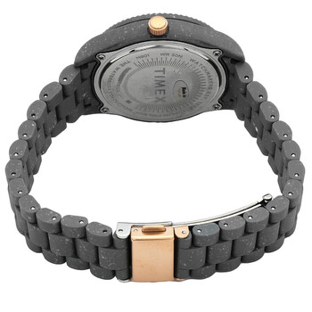 Gray tide ocean case and band. Fixed gray tide ocean bezel. Gray dial with index hour markers. Dial Type: Analog. Luminescent hands. Quartz movement. Scratch resistant mineral crystal. Pull / push crown. Solid case back. Round case shape, case size: 37 mm. Band width: 18 mm. Deployment clasp. Water resistant at 30 meters / 100 feet. Functions: hour, minute, second. Waterbury Ocean Series. Sport watch style. Timex Waterbury Ocean Quartz Ladies Watch TW2V33000.