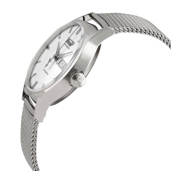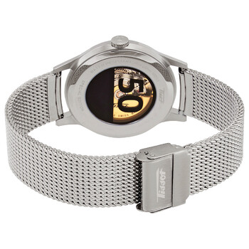 Stainless steel case with a stainless steel mesh bracelet. Fixed stainless steel bezel. Silver dial with silver-tone hands and index hour markers. Minute markers around the outer rim. Dial Type: Analog. Day of the week and date display at the 3 o'clock position. Caliber ETA 2836-2 automatic movement with a 38-hour power reserve. Scratch resistant sapphire crystal. Pull / push crown. Transparent case back. Round case shape. Case size: 40 mm. Case thickness: 11.6mm. Band width: 20 mm. Fold over slip through clasp. Water resistant at 30 meters / 100 feet. Casual watch style. Watch label: Swiss Made. Tissot Automatic Watch T019.430.11.031.01.