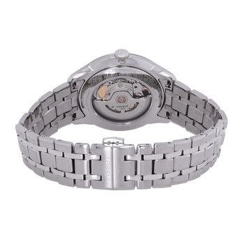 Silver-tone stainless steel case and bracelet. Fixed silver-tone stainless steel bezel. Silver dial with silver-tone hands and index hour markers. Minute markers around the outer rim. Dial Type: Analog. Date display at the 6 o'clock position. Powermatic 80.111 Automatic movement, containing 23 Jewels, bitting at 28800 vph, and has a power reserve of approximately 80 hours. Scratch resistant sapphire crystal. Pull / push crown. Transparent case back. Round case shape, case size: 39 mm, case thickness: 11.2 mm. Band width: 20 mm. Butterfly clasp. Water resistant at 50 meters / 165 feet. Functions: date, hour, minute, second. Chemin Des Tourelles Series. Casual watch style. Watch label: Swiss Made. Tissot Chemin Des Tourelles Automatic Silver Dial Men's Watch T139.807.11.031.00.