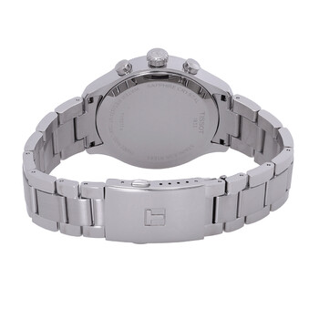 Silver-tone stainless steel case with a blue stainless steel bracelet. Fixed silver-tone stainless steel bezel. Green dial with silver-tone hands and Arabic numeral hour markers. Minute markers around the outer rim. Dial Type: Analog. Luminescent hands and markers. Date display at the 4 o'clock position. Chronograph - three sub-dials displaying: 60 second, 30 minute and 1/10th of a second. ETA Caliber G10.212 quartz movement. Scratch resistant sapphire crystal. Solid case back. Round case shape, case size: 45 mm, case thickness: 11 mm. Band width: 22 mm. Fold over clasp with a safety release. Water resistant at 100 meters / 330 feet. Functions: chronograph, rattrapante, date, hour, minute, small second. Chrono Xl Classic Series. Sport watch style. Watch label: Swiss Made. Tissot Chrono XL Classic Quartz Green Dial Men's Watch T116.617.11.092.00.