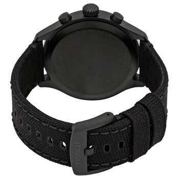 Black PVD stainless steel case with a black fabric strap. Fixed black PVD bezel. Green dial with luminous black hands and index hour markers. Minute markers around the outer rim. Dial Type: Analog. Luminescent hands and markers. Date display at the 4 o'clock position. Chronograph - three sub-dials displaying: 60 second, 30 minute and 1/10th of a second. ETA caliber G10.212 quartz movement. Scratch resistant sapphire crystal. Solid case back. Round case shape. Case size: 45 mm. Case thickness: 11 mm. Band width: 22 mm. Tang clasp. Water resistant at 100 meters / 330 feet. Functions: chronograph, rattrapante, date, hour, minute, small second. Sport watch style. Watch label: Swiss Made. Tissot Chronograph Quartz Green Dial Men's Watch T116.617.37.091.00.