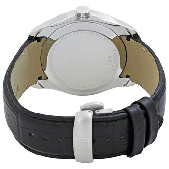Stainless steel case with a black leather strap. Fixed stainless steel bezel. Black dial with silver-tone hands and index hour markers. Minute markers around the outer rim. Dial Type: Analog-digital. Digital. Digital seconds display. Quartz movement. Scratch resistant sapphire crystal. Pull / push crown. Solid case back. Round case shape. Case size: 39 mm. Case thickness: 10.5 mm. Band width: 22 mm. Deployment clasp. Water resistant at 100 meters / 330 feet. Functions: date, hour, minute. Additional Info: digital chinese calendar feature. Sport watch style. Watch label: Swiss Made. Tissot Couturier Analog Digital Men's Watch T035.446.16.051.01.