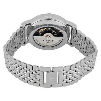Silver-tone stainless steel case with a silver-tone stainless steel bracelet. Fixed silver-tone stainless steel bezel. Black dial with silver-tone hands and index / Arabic numeral hour markers. Minute markers around the outer rim. Dial Type: Analog. Date display at the 3 o'clock position. ETA Caliber Swissmatic C15.111 Automatic movement, containing 19 Jewels, bitting at 21600 vph, and has a power reserve of approximately 75 hours. Scratch resistant sapphire crystal. Pull / push crown. Transparent case back. Round case shape, case size: 40 mm, case thickness: 11.62 mm. Band width: 21 mm. Jewelry clasp. Water resistant at 30 meters / 100 feet. Functions: hour, minute, second. Everytime Swissmatic Series. Casual watch style. Watch label: Swiss Made. Tissot Everytime Automatic Black Dial Men's Watch T109.407.11.052.00.