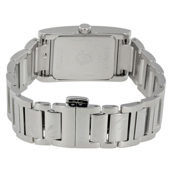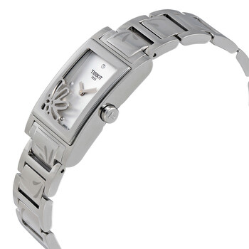 Stainless steel case with a stainless steel bracelet. Fixed stainless steel bezel. Silver dial with luminous silver-tone hands. Dot markers at the 3, 6, 9 and 12 o'clock positions. Dial Type: Analog. Quartz movement. Scratch resistant sapphire crystal. Solid case back. Case dimensions: 27 mm x 21 mm. Case thickness: 8 mm. Rectangle case shape. Deployment clasp. Water resistant at 30 meters / 100 feet. Functions: hour, minute. Casual watch style. Watch label: Swiss Made. Tissot Fabulous Garden Silver Dial Stainless Steel Ladies Watch T017.109.11.031.00.