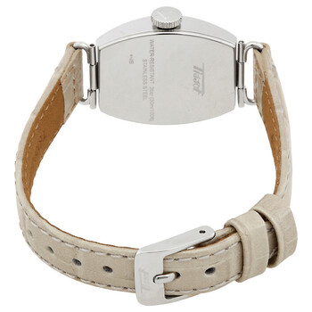 Silver-tone 316L stainless steel case with a grey leather strap. Fixed silver-tone stainless steel bezel. Orange dial with black hands and Arabic numeral hour markers. Dial Type: Analog. ETA Caliber E61.031 quartz movement. Scratch resistant mineral crystal. Pull / push crown. Solid case back. Tonneau case shape, case size: 22 mm, case thickness: 8.4 mm. Band width: 12.00 mm. Buckle clasp. Water resistant at 30 meters / 100 feet. Functions: hour, minute. Heritage Series. Casual watch style. Watch label: Swiss Made. Tissot Heritage Quartz Orange Dial Ladies Watch T128.109.16.282.00.