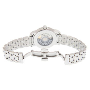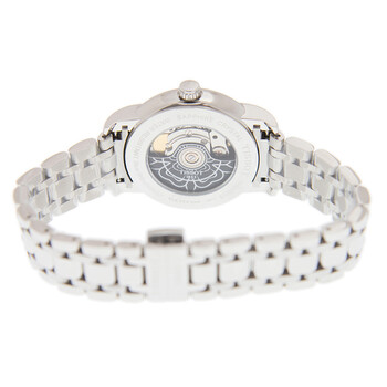 Silver-tone stainless steel case and bracelet. Fixed silver-tone stainless steel bezel. White mother of pearl dial with silver-tone alpha-style hands and index hour markers. Arabic numerals mark the 3, 6 and 9 o'clock positions. Dial Type: Analog. Powermatic 80.11 automatic movement with an 80-hour power reserve. Scratch resistant sapphire crystal. Pull / push crown. Transparent case back. Round case shape, case size: 35 mm, case thickness: 9.75 mm. Band width: 16 mm. Butterfly clasp. Water resistant at 30 meters / 100 feet. Functions: hour, minute, second. Additional Info: for ladies looking to exude graceful and feminine charm with a touch of colour in the flower that changes everyday. Lady Heart Series. Casual watch style. Watch label: Swiss Made. Item Variations: T0502071111705. Tissot Lady Heart Automatic White Mother of Pearl Dial Ladies Watch T050.207.11.117.05.