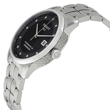 Stainless steel case with a stainless steel bracelet. Fixed stainless steel bezel. Black dial with silver-tone hands and diamond hour markers. Minute markers around the outer rim. Dial Type: Analog. Date display at the 3 o'clock position. Powermatic 80.111 automatic movement with an 80-hour power reserve. Scratch resistant sapphire crystal. Pull / push crown. Skeleton case back. Case size: 41 mm. Case thickness: 9.75 mm. Round case shape. Bracelet width: 22 mm. Deployment clasp with a push button release. Water resistant at 50 meters / 165 feet. Functions: date, hour, minute, second. Dress watch style. Watch label: Swiss Made. Item Variations: T086 408 11 056 00, T086-408-11-056-00, T086/408/11/056/00, T0864081105600. Tissot Luxury Automatic Black Dial Men's Watch T086.408.11.056.00. This Tissot watch from Luxury automatic series features a precise automatic movement encased in stainless steel case 41 mm diameter 9.75 mm thickness with scratch resistant sapphire crystal. In addional this Tissot watch features black dial, fixed bezel, pull / push crown. This watch rests comfortably on your wrist with its stainless steel bracelet secured by deployment with push button release clasp. Tissot Luxury Automatic Black Diamond Dial Men's Watch T086.408.11.056.00.