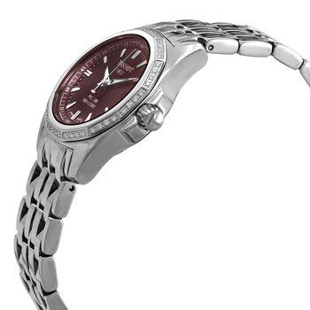 Stainless steel case and bracelet. Fixed stainless steel bezel. Brown dial with luminous silver-tone hands and index hour markers. Arabic numeral minute markers (at 5 minute intervals). Minute markers around the outer rim. Dial Type: Analog. Luminescent hands and markers. Date display at the 3 o'clock position. Quartz movement. Scratch resistant sapphire crystal. Pull / push crown. Solid case back. Dodecagon case shape. Case size: 28 mm, case thickness: 9 mm. Band width: 14 mm. Band length: 7.5 inches. Fold over clasp with a safety release. Water resistant at 100 meters / 330 feet. Functions: chronograph, date, hour, minute, second. Prc 100 Series. Casual watch style. Watch label: Swiss Made. Item Variations: T22118111. Tissot PRC 100 Chronograph Quartz Brown Dial Ladies Watch T22.1.181.11.