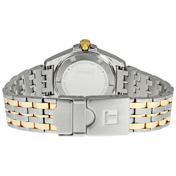Two-tone yellow gold stainless steel and stainless steel case. Two-tone yellow gold stainless steel and stainless steel bracelet. Silver dial with date display at 3 o'clock. Diamond bezel. Scratch resistant sapphire crystal. Deployment buckle clasp. 28mm case diameter. Quartz movement. Water resistant at 100 meters (330 feet).