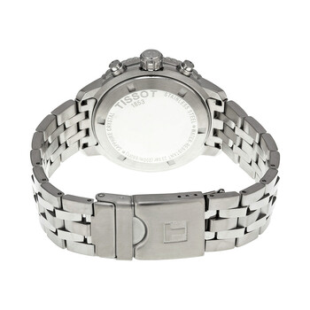 Stainless steel case with a stainless steel bracelet. Unidirectional stainless steel bezel. Blue dial with luminous hands and index hour markers. Minute markers. tachymeter around the outer rim. Dial Type: Analog. Luminescent hands and markers. Date display at the 4 o'clock position. Chronograph - three silver sub-dials displaying: 60 second, 60 minute and 1/10th of a second. ETA Caliber G10.211 quartz movement. Scratch resistant sapphire crystal. Screw down crown. Solid case back. Case size: 42 mm. Case thickness: 12 mm. Round case shape. Band width: 20 mm. Band length: 8 inches. Deployment clasp. Water resistant at 200 meters / 660 feet. Functions: chronograph, tachymeter, date, hour, minute, second. Sport watch style. Watch label: Swiss Made. Item Variations: T067 417 11 041 00, T067-417-11-041-00, T067/417/11/041/00, T0674171104100. Tissot PRS 200 Chronograph Blue Dial Sport Men's Watch T0674171104100.