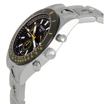 Stainless steel case with a stainless steel bracelet. Fixed bezel. Black dial with luminous hands and index hour markers. Minute markers around the outer rim. Luminescent hands and markers. Date display at the 4 o'clock position. Quartz movement. Scratch resistant sapphire crystal. Push in crown. Screw down case back. Case diameter: 40 mm. Case thickness: 11.5 mm. Fold over clasp. Water resistant at 50 meters / 165 feet. Functions: hours, minutes, seconds, date, chronograph, tachymeter. AdditionalInfo: chronograph, tachymeter, date display at 4 o'clock. Tissot PRS516 Chronograph Men's Watch T91148851.