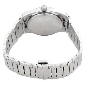 Silver-tone stainless steel case and bracelet. Fixed silver-tone stainless steel bezel. Light green dial with silver-tone hands and index hour markers. Minute markers around the outer rim. Dial Type: Analog. Luminescent hands and markers. Date display at the 3 o'clock position. Quartz movement. Scratch resistant sapphire crystal. Pull / push crown. Solid case back. Tonneau case shape, case size: 35 mm, case thickness: 9.6 mm. Band width: 11 mm. Butterfly with push button release clasp. Water resistant at 100 meters / 330 feet. Functions: date, hour, minute, second. Prx Series. Casual watch style. Watch label: Swiss Made. Tissot PRX Quartz Light Green Dial Ladies Watch T1372101109100.
