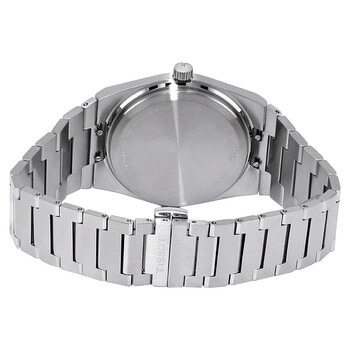 Silver-tone 316L stainless steel case with a silver-tone stainless steel bracelet. Fixed silver-tone stainless steel bezel. Green dial with luminous silver-tone hands and index hour markers. Minute markers around the outer rim. Dial Type: Analog. Luminescent hands and markers. Date display at the 3 o'clock position. Quartz movement. Scratch resistant sapphire crystal. Solid case back. Tonneau case shape, case size: 40 mm, case thickness: 10.4 mm. Band width: 12 mm. Butterfly with push-buttons clasp. Water resistant at 100 meters / 330 feet. Functions: date, hour, minute, second. Prx T-classic Series. Dress watch style. Watch label: Swiss Made. Tissot PRX T-Classic Quartz Green Dial Men's Watch T1374101109100.