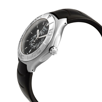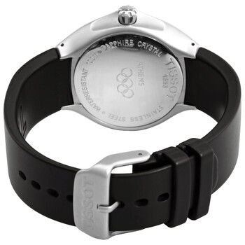 Silver-tone stainless steel case with a black rubber strap. Fixed silver-tone stainless steel bezel. Black dial with luminous silver-tone hands and index hour markers. Minute markers around the outer rim. Dial Type: Analog. Luminescent hands and markers. Date display at the 6 o'clock position. Quartz movement. Scratch resistant sapphire crystal. Pull / push crown. Solid case back. Round case shape, case size: 40 mm, case thickness: 10.48 mm. Band width: 17 mm, band length: 9.5 inches. Tang clasp. Water resistant at 100 meters / 330 feet. Functions: date, hour, minute, second. Casual watch style. Watch label: Swiss Made. Tissot Quartz Black Dial Black Rubber Men's Watch T12.1.591.91.