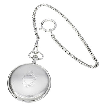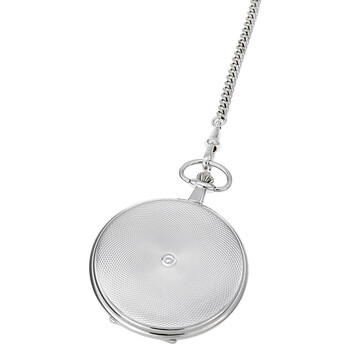 Palladium-plated brass case with a palladium-plated brass chain bracelet. Fixed bezel. White dial with black-tone hands and Roman numeral hour markers. Minute markers around the outer rim. Dial Type: Analog. Date display at the 6 o'clock position. ETA Caliber 955.112 quartz movement. Scratch resistant mineral crystal. Solid case back. Case size: 48.96 mm. Case thickness: 12.7 mm. Round case shape. Functions: date, hour, minute, second, battery eol indicator. Luxury watch style. Tissot Savonnette Palladium Plated Brass Pocket Watch T83650813.