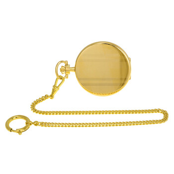 Gold-plated brass case with a gold-plated chain. Fixed gold-plated brass bezel. White dial with black hands and Roman numeral hour markers. Minute markers around the outer rim. Date display at the 6 o'clock position. Quartz movement. Scratch resistant mineral crystal. Solid case back. Case diameter: 48 mm. Case thickness: 10.2 mm. Round case shape. Functions: date, hour, minute, second. Casual watch style. Item Variations: T83455313. Tissot Savonnette White Dial Pocket Watch T83.4.553.13.