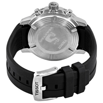 Stainless steel case with a black rubber strap. Uni-directional rotating stainless steel bezel with a black aluminium top ring. Red gradient dial with luminous silver-tone hands and dot hour markers. Minute markers around the outer rim. Dial Type: Analog. Luminescent hands and markers. Date display between the 4 and 5 o'clock positions. Chronograph - three sub-dials displaying: 60 second, 30 minute and 1/10th of a second. ETA caliber G10.212 quartz movement. Scratch resistant sapphire crystal. Screw down crown. Solid case back. Round case shape. Case size: 45.5 mm. Case thickness: 12.8 mm. Band width: 22 mm. Tang clasp. Water resistant at 300 meters / 1000 feet. Functions: chronograph, rattrapante, date, hour, minute, small second. Seastar 1000 Series. Sport watch style. Watch label: Swiss Made. Tissot Seastar 1000 Chronograph Quartz Red Gradient Dial Men's Watch T120.417.17.421.00.