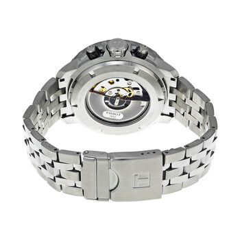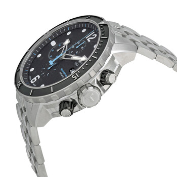 Stainless steel case with a stainless steel bracelet. Uni-directional rotating black PVD bezel. Black dial with luminous hands and dot hour markers. Arabic numerals mark the 6 and 12 o'clock positions. minute markers around the outer rim. Dial Type: Analog. Luminescent hands and markers. Date display at the 3 o'clock position. Chronograph - three sub-dials displaying: 60 second, 30 minute and 1/10th of a second. Automatic movement. Eta c01.211 engine. Scratch resistant sapphire crystal. Skeleton case back. Case diameter: 48 mm. Round case shape. Band width: 22 mm. Fold over with safety release clasp. Water resistant at 300 meters / 1000 feet. Functions: chronograph, date, hour, minute, second. Casual watch style. Watch label: Swiss Made. Tissot Seastar Chronograph Black Dial Men's Watch T0664271105700.