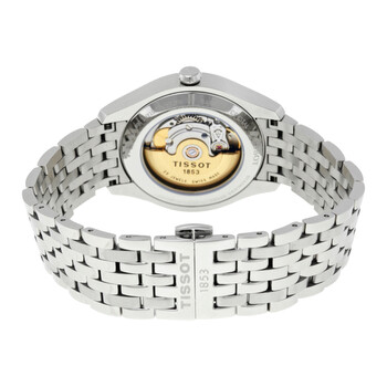 Stainless steel case with a stainless steel bracelet. Fixed stainless steel bezel. Anthracite dial with silver-tone hands and stick hour markers. Arabic numerals mark the 3, 6 and 9 o'clock positions. Minute markers around the outer rim. Dial Type: Analog. Luminescent hands and markers. Date display at the 6 o'clock position. Day of the week display centered on the 12 o'clcok position. ETA 2834-2 automatic movement with a 38-hour power reserve. Scratch resistant sapphire crystal. Push / pull crown. Transparent case back. Case size: 38 mm. Case thickness: 11 mm. Round case shape. Invisible double locking clasp. Water resistant at 50 meters / 165 feet. Functions: hours, minutes, seconds, day-date. Casual watch style. Watch label: Swiss made. Item Variations: T0384301106700. Tissot T-One Men's Watch T038.430.11.067.00.