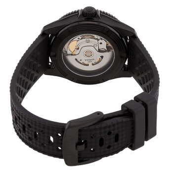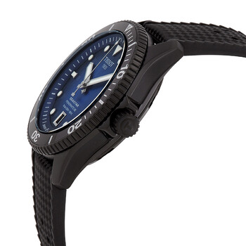 Black stainless steel case with a black rubber strap. Uni-directional rotating black stainless steel bezel. Blue dial with grey-tone hands and batons hour markers. Minute markers around the outer rim. Dial Type: Analog. Luminescent hands and markers. Date display at the 6 o'clock position. 11 1/2 automatic movement with an 80-hour power reserve. Scratch resistant sapphire crystal. Screw down crown. Transparent case back. Round case shape, case size: 40 mm, case thickness: 12.5 mm. Buckle clasp. Water resistant at 300 meters / 1000 feet. Functions: date, hour, minute, second. T-sport Series. Sport watch style. Watch label: Swiss Made. Tissot T-Sport Automatic Blue Dial Unisex Watch T1208073704100.