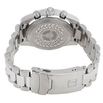 Silver-tone stainless steel case and bracelet. Two tone (black & white) stainless steel bezel. Black dial with silver-tone hands and index hour markers. Minute markers around the outer rim. Dial Type: Analog. Luminescent hands and markers. Chronograph - three sub-dials displaying: 60 second, 30 minute and 1/10th of a second. Quartz movement. Scratch resistant sapphire crystal. Screw down crown. Solid case back. Round case shape, case size: 40 mm, case thickness: 12.2 mm. Band width: 20 mm. Fold over clasp with a safety release. Water resistant at 100 meters / 330 feet. Functions: chronograph, hour, minute, second. T-sport Series. Sport watch style. Watch label: Swiss Made. Tissot T-Sport Chronograph Quartz Black Dial Men's Watch T149.417.11.051.00.