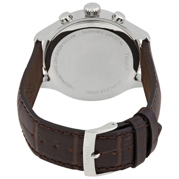 Stainless steel case with a brown leather strap. Fixed stainless steel bezel. Green dial with luminous silver-tone hands and index hour markers. Minute markers around the outer rim. Dial Type: Analog. Date display at the 4 o'clock position. Chronograph - three sub-dials displaying: 60 second, 30 minute and 1/10th of a second. ETA caliber G10.212 quartz movement. Scratch resistant sapphire crystal. Pull / push crown. Solid case back. Round case shape. Case size: 45 mm. Case thickness: 11 mm. Band width: 22 mm. Tang clasp. Water resistant at 100 meters / 330 feet. Functions: chronograph, rattrapante, date, hour, minute, small second. T-sport Series. Sport watch style. Watch label: Swiss Made. Tissot T-Sport Chronograph Quartz Green Dial Men's Watch T116.617.16.091.00.