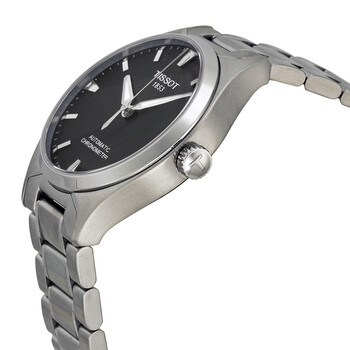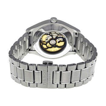Stainless steel case with a stainless steel bracelet. Fixed stainless steel bezel. Black dial with luminous silver-tone hands and index hour markers. Minute markers around the outer rim. Dial Type: Analog. Luminescent hands and markers. Date display at the 3 o'clock position. Automatic movement. Scratch resistant sapphire crystal. Skeleton case back. Case diameter: 39 mm. Case thickness: 11.25 mm. Round case shape. Band width: 20 mm. Deployment clasp. Water resistant at 100 meters / 330 feet. Functions: date, hour, minute, second. Sport watch style. Tissot T-Tempo Automatic Black Dial Stainless Steel Men's Watch T0604081105100.