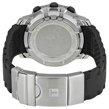 Stainless steel case with a black rubber strap. Fixed black and silver stainless steel bezel. Black dial with orange hands and index hour markers. Minute markers. Functions listed around the outer rim. Dial Type: Analog-digital. Luminescent hands and markers. Digital chronograph display. ETA caliber E48.301 quartz movement. Scratch resistant tactile sapphire crystal. Solid case back. Dodecagon case shape. Case size: 44.4 mm. Case thickness: 15.8 mm. Band width: 20 mm. Safety (diver's extension) clasp. Water resistant at 100 meters / 330 feet. Functions: alarm, comass, dive, chronograph, logbook, date, month, year, hour, minute, second. Additional Info: suitable for recreational scuba diving. Sport watch style. Watch label: Swiss made. Item Variations: T0264201728101. Tissot T-Touch Sea-Touch Men's Watch T026.420.17.281.01.