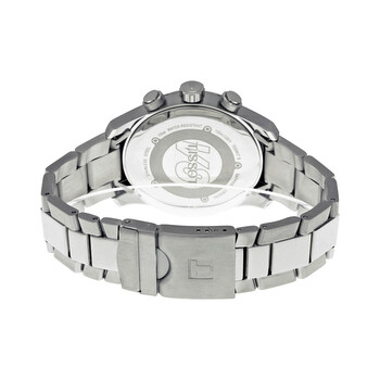 Stainless steel case with a two-tone (grey and silver-tone) stainless steel bracelet. Fixed stainless steel bezel with minute markers. Blue dial with silver-tone hands and index and Arabic numeral hour markers. Dial Type: Analog. Luminescent hands and markers. Date display at the 3 o'clock position. Chronograph - three sub-dials displaying: 60 second, 30 minute and 1/10th of a second. Quartz movement. Scratch resistant sapphire crystal. Screw down crown. Solid case back. Case diameter: 42.5 mm. Case thickness: 11.05 mm. Round case shape. Fold over clasp. Water resistant at 100 meters / 330 feet. Functions: chronograph, date, hour, minute, second. Sport watch style. Watch label: Swiss Made. Tissot V8 Blue Dial Stainless Steel Men's Watch T0394171104703.